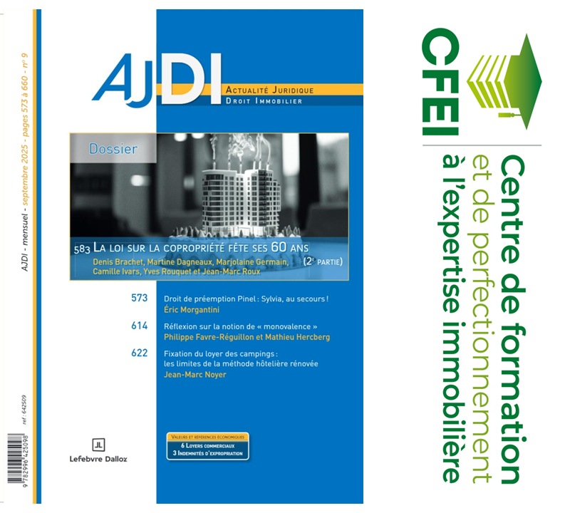 Philippe Favre-Réguillon, formateur et directeur du Centre de Formation à l’Expertise immobilière et Mathieu Hercberg signent une étude dans les pages de l’AJDI Lefebvre Dalloz | Avocats (septembre) revue de référence du monde expertal judiciaire, intitulée « Réflexion sur la notion de monovalence ».